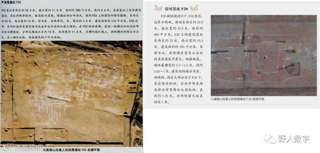 莫角山宫殿台地利用自然山体,东部堆筑清灰淤泥为基础,一些区域用草裹泥堆筑,堆筑到一定高度后用黄土加筑,边缘板筑方式加固。