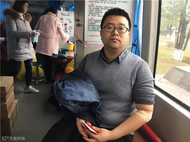 第一次参加献血,很感慨以前埋头读书做学问做研究没有参加类似公益活动,表示自己一直很爱惜身体,以后有机会一定会坚持献血。
