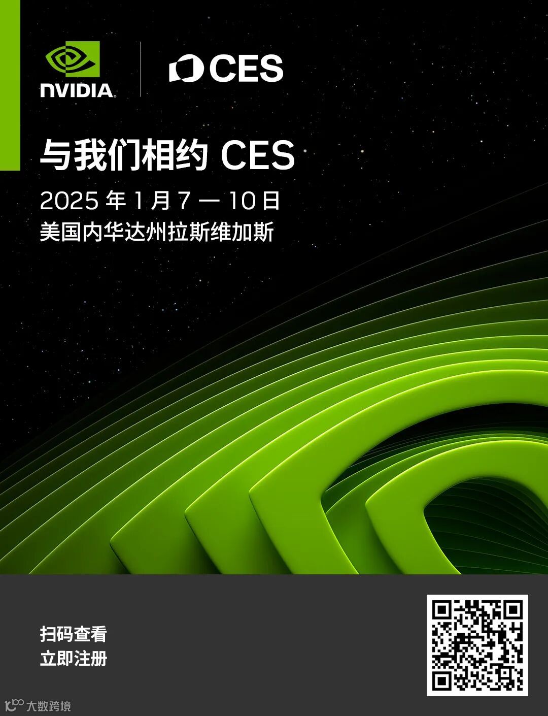 点击“阅读原文”或扫描海报二维码,北京时间 1 月 7 日(星期二)上午 10:30 观看 NVIDIA CEO 黄仁勋在拉斯维加斯现场发表的 CES 开幕主题演讲。