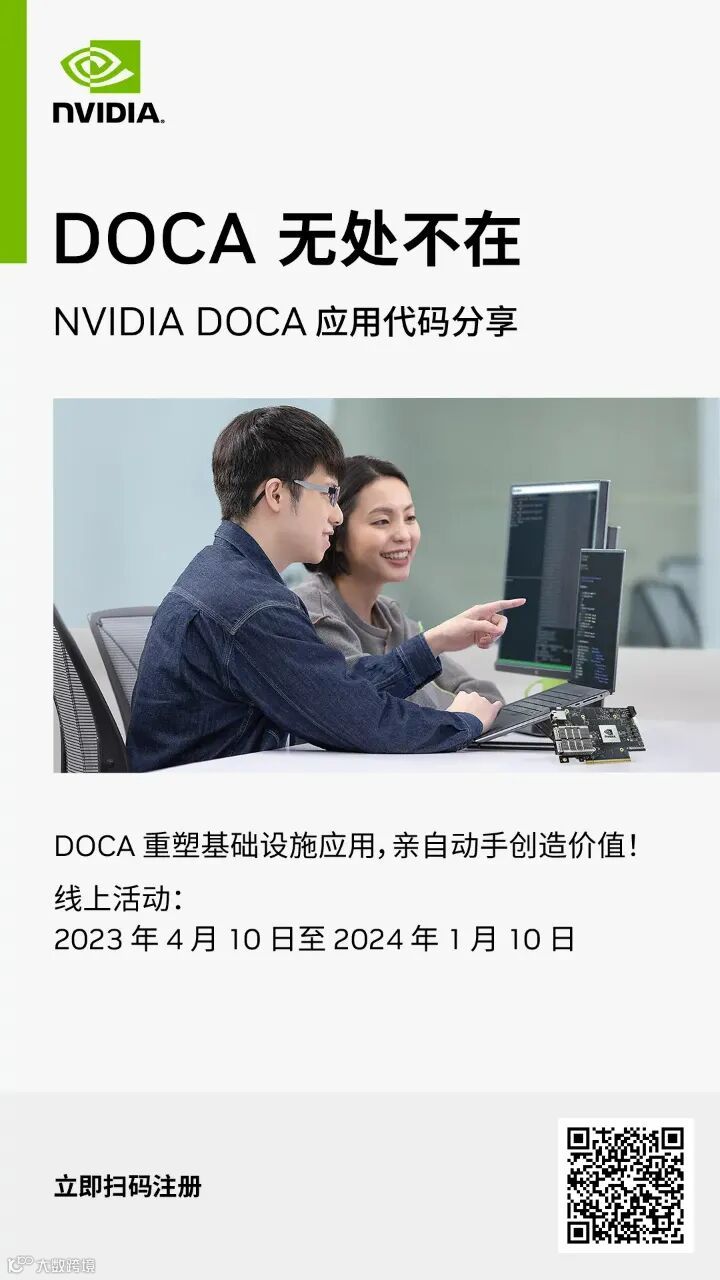扫描下方二维码,立刻注册体验 NVIDIA DOCA!