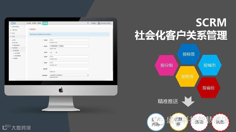 云端管理,大数据分析,可视化报表!随着现代化SCRM社会化客户关系管理应用的日益普及,酒店精细化运营也不再遥不可及。盛阳智慧酒店平台依托强大的技术开发实力,旨在实现酒店会员的精细化运营和管理,为酒店的精准营销、二次营销提供必要的数据基础和分析工具。
