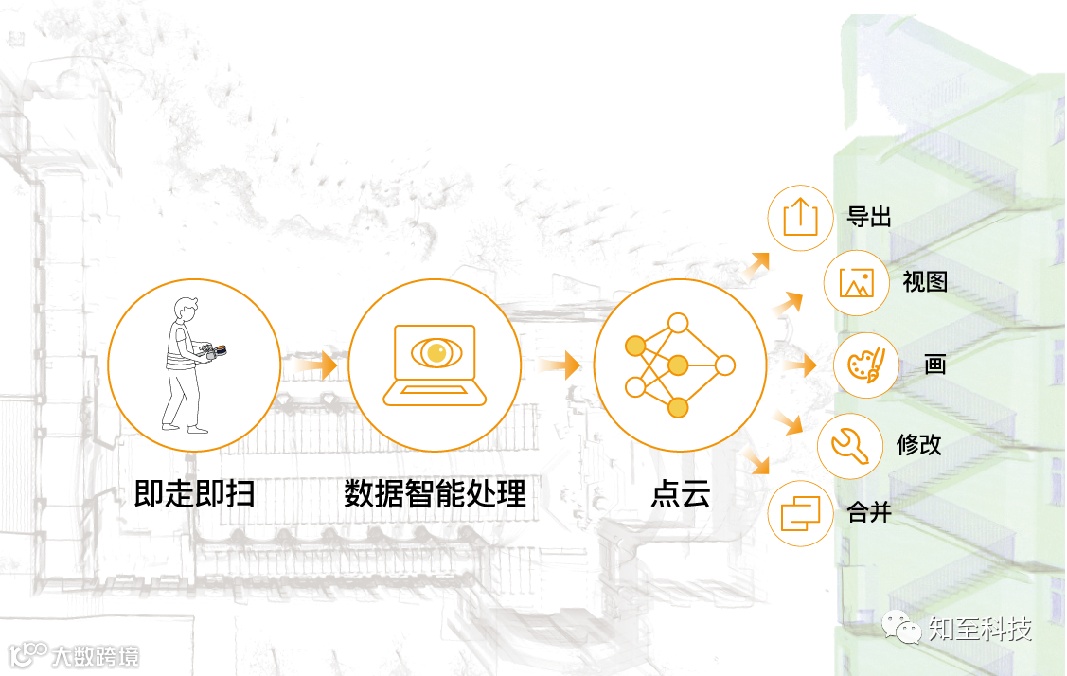 最终成果:三维点云数据(点云模型、俯视图、细部图)、CAD轮廓图、Revit模型图