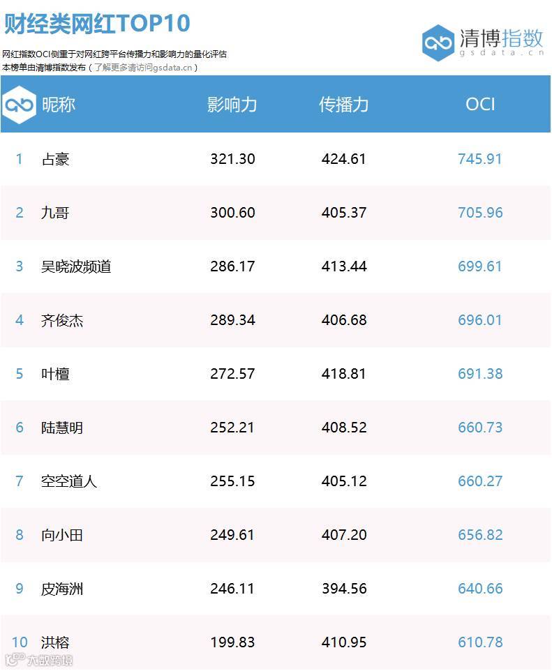纵观本期网红榜榜单,头部账号的热度居高不下,“贾跃亭”以875.11的OCI蝉联冠军。