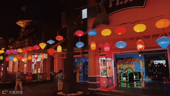 闪烁的彩灯让黑夜变得五彩斑斓。