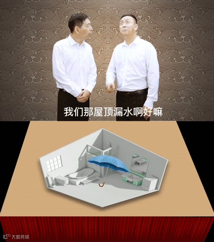 房子漏水故事用喜剧的方式将故事传递,让参观者在笑声中接收信息,记忆更加深刻,故事中房屋漏水产生强烈的共鸣。