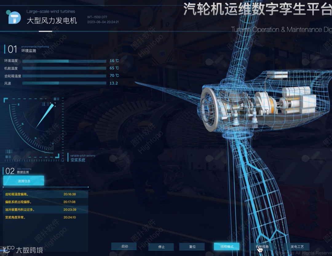 多种工况与特效模拟:该模块不仅包括设备的基本运行过程,还结合油、气、水、电等特效,真实地再现设备在不同工况下的表现。这种高仿真模拟为运维人员提供了丰富的实操指导和演练机会。