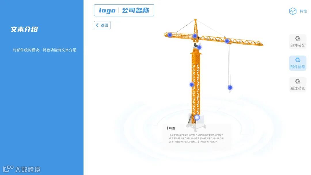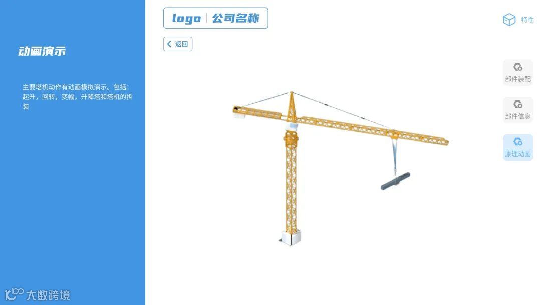 精美的宣传平台。从二维到三维,从静态到动态,让用户可以从各个角度观察塔机的形状,性能和动作,对产品系列的亮点一目了然; -