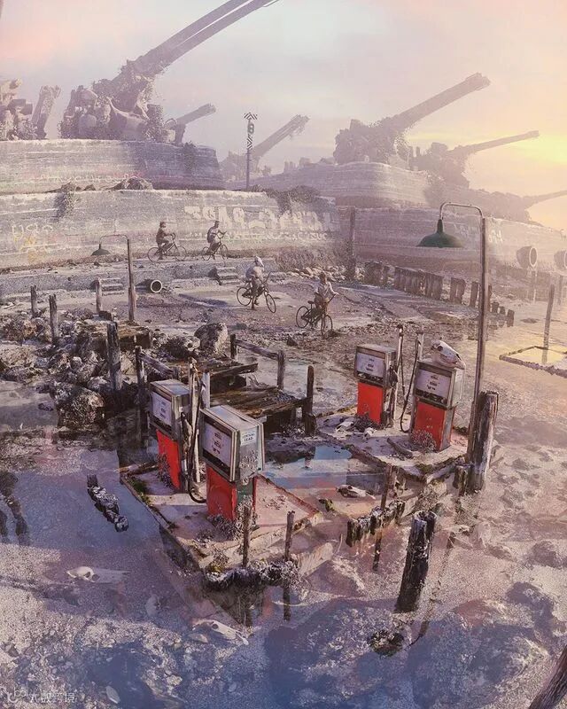 Ian的作品多以3D、blender渲染为主,围绕科幻与末日等题材进行绘制,对场景的处理和氛围的营造,尽显磅礴大气。