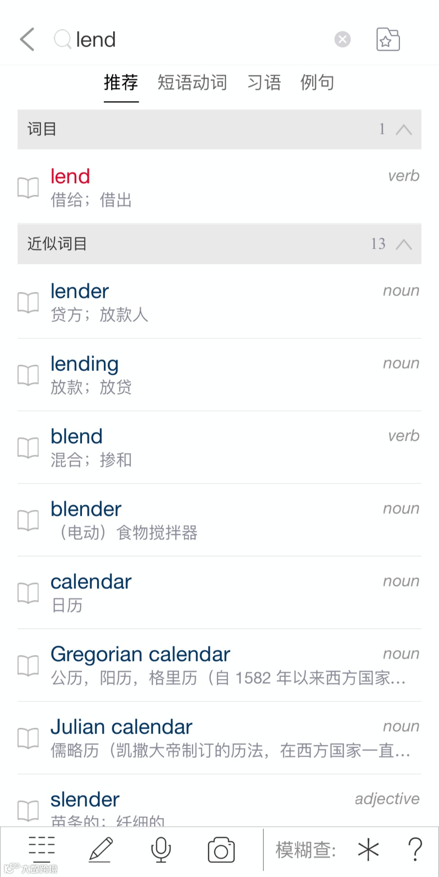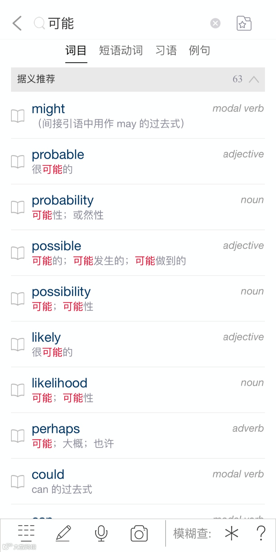 牛津英语学习词典App支持英汉、汉英双向查询,智能检索单词、短语、习语、例句,触类旁通,从一个词到一类词,帮助学习者在查词典的过程中源源不断积累词汇。