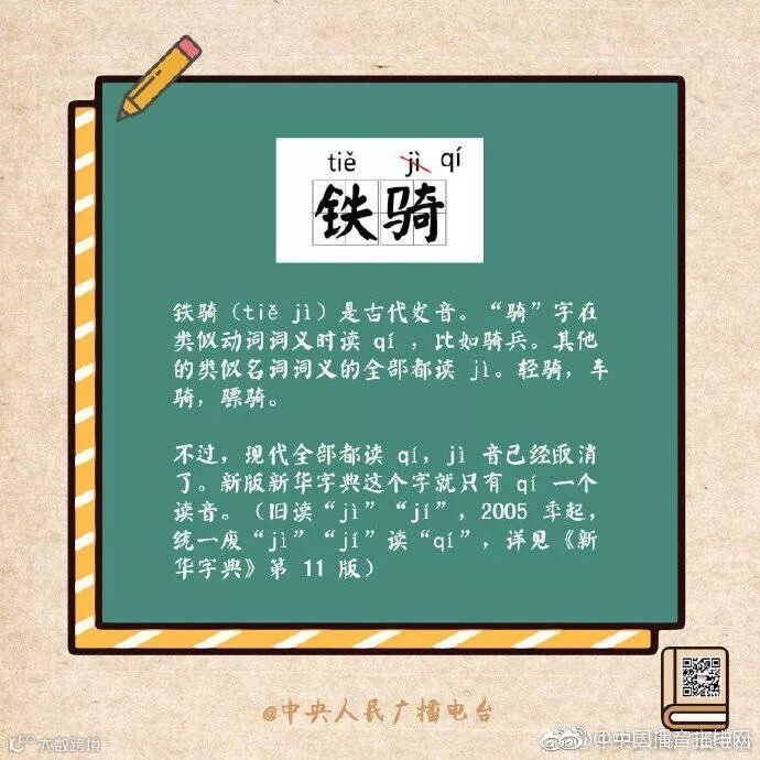 (“骑”在《新华字典》(第11版)中仅有qí一个读音)
