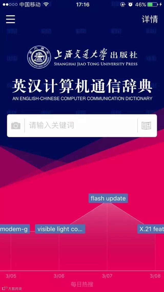 纸质版由上海交大出版社权威出版发行,经数位专家编写、审定,较为系统和全面地收录了当前计算机通信领域中常用的11,000余条英语词汇,内容丰富。