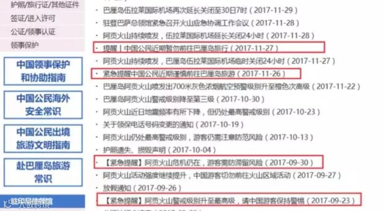 而且在此之前,大使馆已多次提醒游客近期不宜前往巴厘岛。