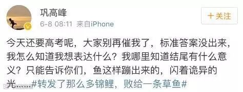 高考才结束一天,微博上围绕试题的段子已经装了一航母,三十万浙江考生更是穿过早高峰、避过晚高峰,持续提刀冲向微博战场讨伐巩高峰——一篇阅读理解的原作者