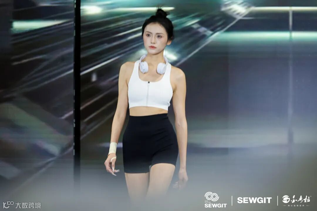 灯光渐暗,动感音乐轰然奏响,T台瞬间被聚光灯点亮,众人瞩目的新品走秀环节正式开启。模特们身着SEWGIT&金考拉2025年春季新品服饰,自信地迈着台步,仿佛将时尚的韵律与科技的力量完美融合,化为行走的艺术。