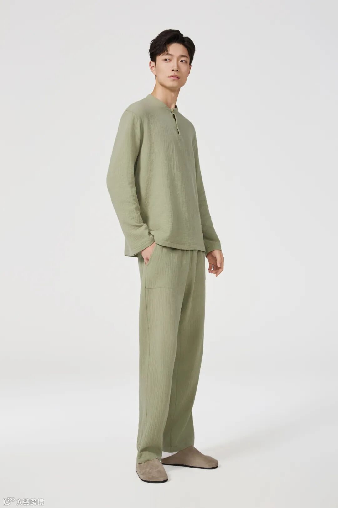 小立领半开襟上衣,简约不失格调。搭配宽松直筒长裤,行动自如。无论是宅家休闲,还是晨起舒展,皆能带来舒适体验。