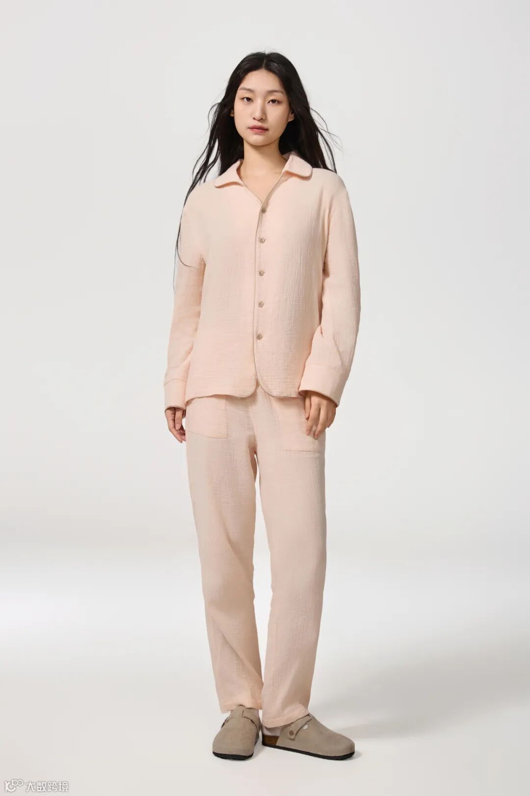经典衬衫领搭配纽扣开合,胸前设有口袋,增添实用性与细节感。长裤宽松舒适,方便活动。无论是居家放松还是短暂外出,都能自在随心。
