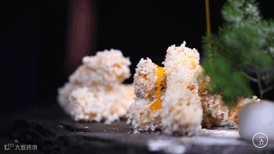 豆腐裹上蛋清、椰浆等食材,油炸出锅