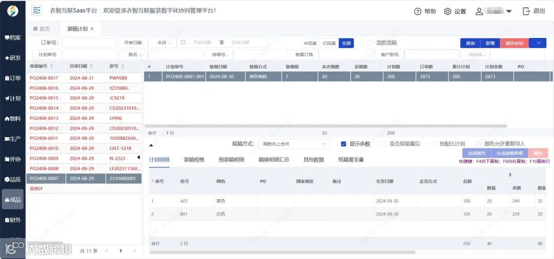 系统生成装箱计划