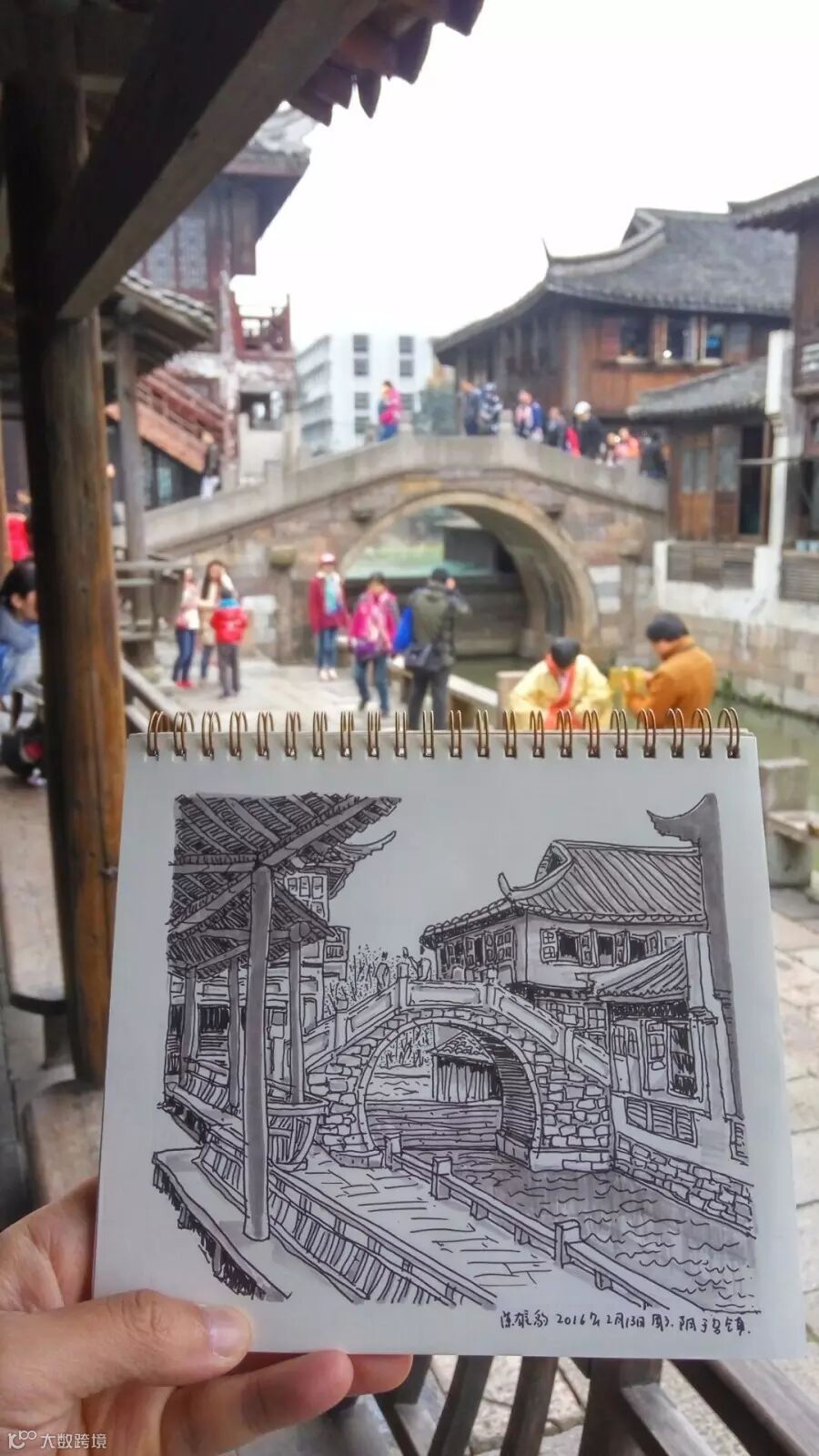 “我想我会坚持画下去,画到我画不动的那天。”这么多年来,阿豹在一个个笔记本里,已经积累了几百张手绘画作。他在飞机上手绘,吸引得空姐在他旁边来回观望十几次;在餐厅里手绘,服务生驻足向他请教手绘技巧,两人相谈甚欢;外出旅游时,兴致来了,他掏出本子坐在地上就开始画,围观的路人在他身边包了一层又一层,他也完全不为所动。
