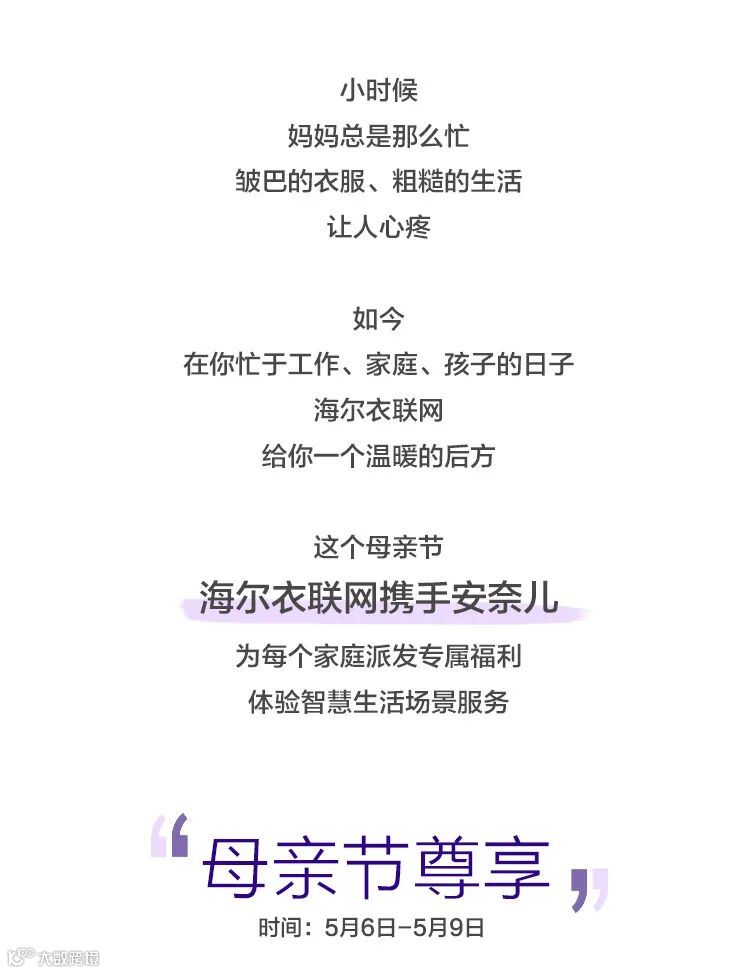 导读:海尔衣联网联动安奈儿为每个忙于工作、生活、孩子的的妈妈,带来尊享福利,惊喜不停。
