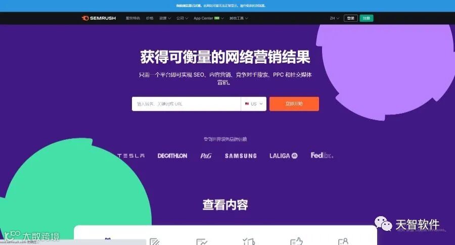 SEMrush 是一款知名的市场营销工具,专注于搜索引擎优化(SEO)、搜索广告、内容营销、竞争情报等领域。它为用户提供了丰富的数据和功能,用于分析网站的表现、竞争对手的策略以及进行市场调研。