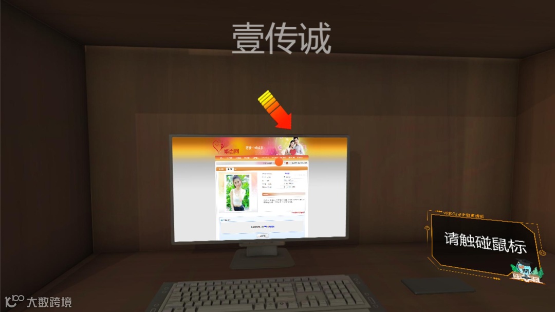 戴上VR眼镜后,“你”在系统中浏览一个婚恋网站并关注了一位女士,一个自称婚恋网站的客服致电可以安排相识,“你”因迫切想“脱单”信以为真,根据对方提示转账注册会员,最终被骗走钱财。通过场景模拟体验完来到视频的案例分析,提醒每一位体验者:骗子以发布虚假婚恋信息为手段,骗取钱财,谨防上当受骗。
