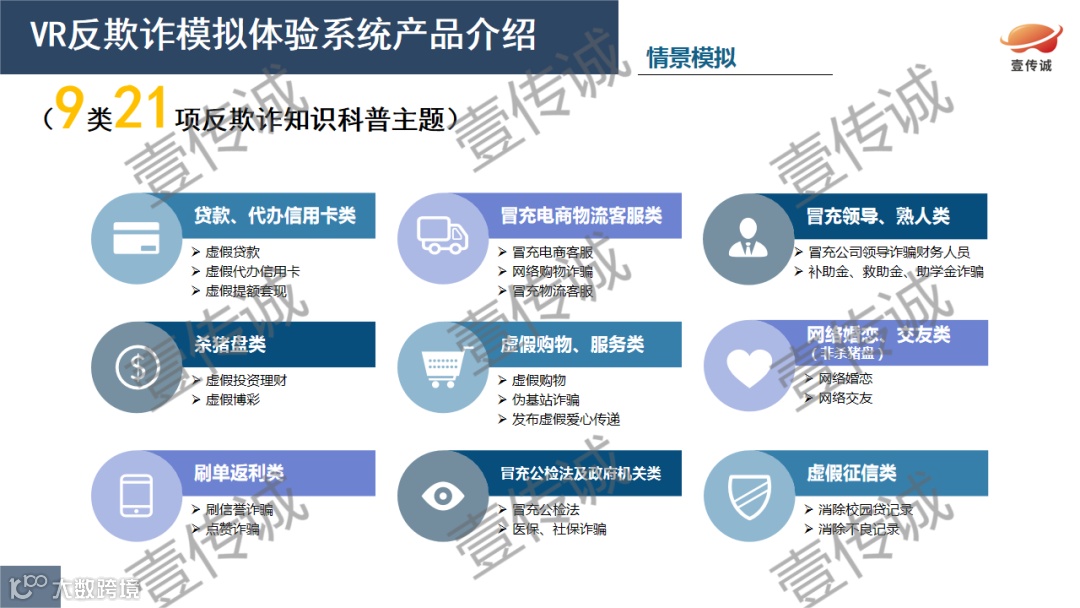 壹传诚VR反欺诈模拟体验系统给出了满意的答卷,利用VR的沉浸性、交互性和空间性的特点,让体验者全身心的投入到诈骗模拟情景中,通过视觉、听觉和行为交互,增强体验者的体验感。壹传诚将真实的诈骗案例制作成了VR沉浸式的互动游戏,让体验者“亲历” 一次被诈骗的全过程,才能更好地识破各种诈骗手段,提高警惕,避免陷入诈骗陷阱。