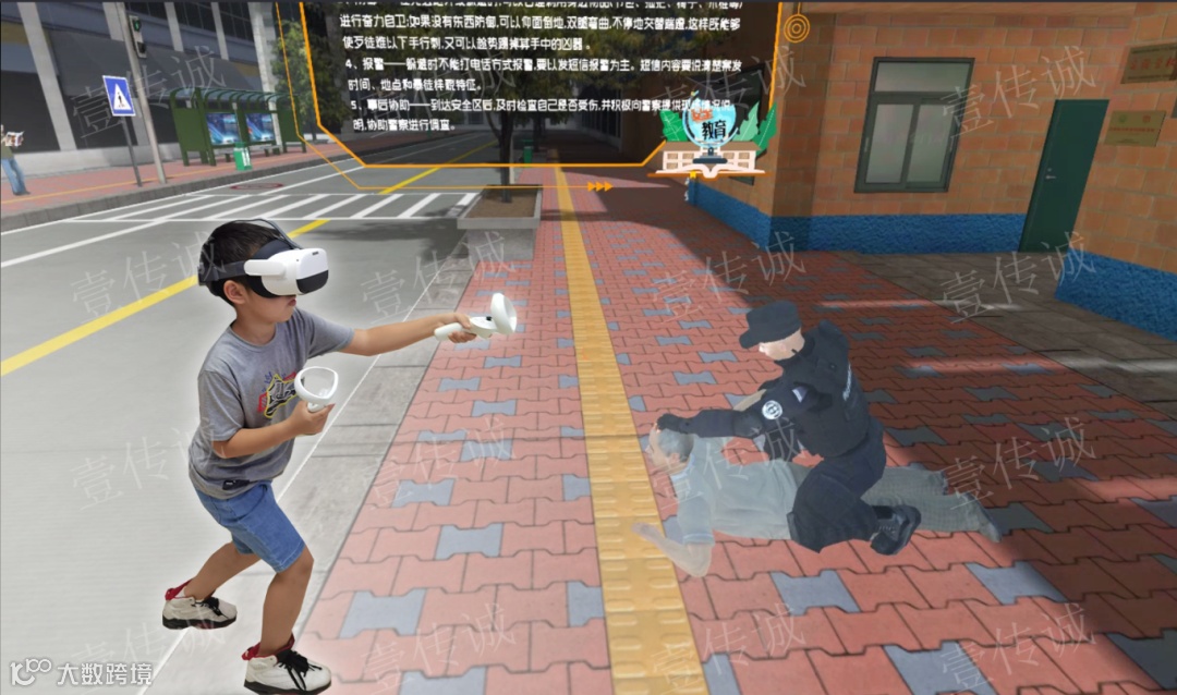 VR未成年人防拐防骗科普模拟体验,这种新型的青少年安全学习方式能让学生们看得见、摸得着、记得住,更加直观地学习各个场景地安全教育知识。壹传诚为青少年所研发的VR青少年安全教育系列就是传统安全教育模式的新改革,打破“说教式”教育存在的耗时长、效果差、学习主观性低等问题,通过VR沉浸式互动的形式进行安全教育,不仅增加了教育的趣味性,也让课堂氛围更加活跃融洽,为青少年的安全教育带来了全新助力,未雨绸缪方能防患于未然。