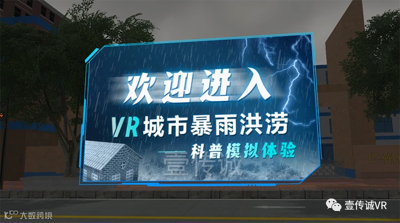 壹传诚推出VR城市暴雨洪涝科普模拟体验(点击文末原文链接查看详情),利用VR技术对暴雨洪涝灾害进行虚拟仿真设计,营造出逼真的灾害场景。系统分为知识科普、情景模拟、知识问答三大部分,体验式教学、沉浸灾害场景仿真,身临感知,记忆深刻,减少自然灾害安全教育普及难度,低成本、效率高、常态化,虚拟场景确保受训人员人身安全,无安全隐患。