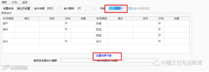 4、年初重算后,需要核对年初余额数据,通过系统提供的试算平衡功能,对各科目已保存的期初余额进行试算,检查期初余额是否借贷平衡。