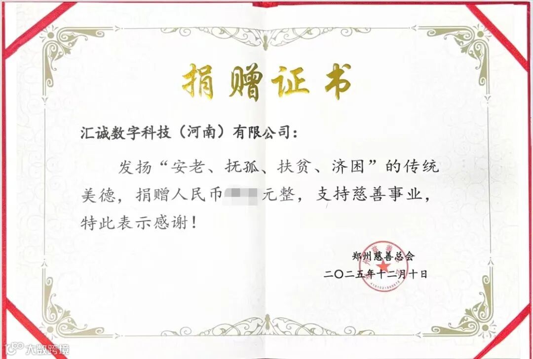 近日,汇诚数字科技(河南)有限公司积极响应郑州慈善总会发起的“一路童行·体育益智包”慈善活动,捐赠善款,用于为乡村学校孩子购置体育益智器材,以实际行动支持乡村教育,传递温暖与关爱。