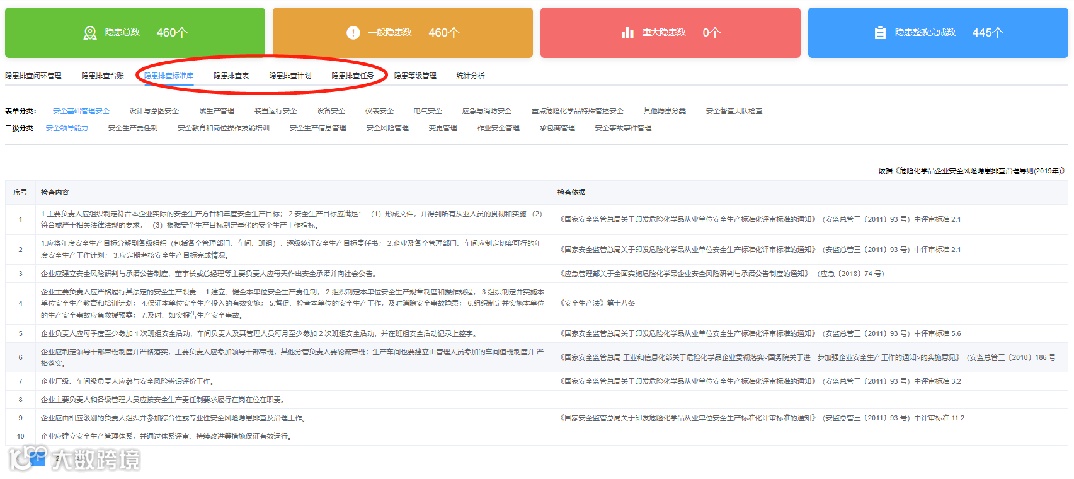 数据内容库:安全生产信息化系统内置了检查表库、隐患依据库、风险辨识库、课件库、试题库、事故案例库、术语定义库等七大库,由南工数科团队数据中心数十名专家多年汇编整理而成,是行业内数据内容最全的信息化平台。