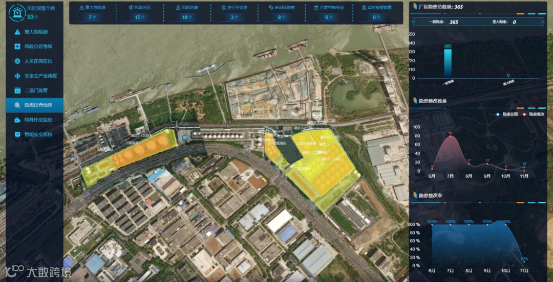 隐患排查数据驾驶舱:系统能够自动统计隐患排查数据,包括各节点的时间、处理进度等,提供迟滞催办和跟踪功能。根据迟滞时间提级预警,确保隐患治理高效透明。