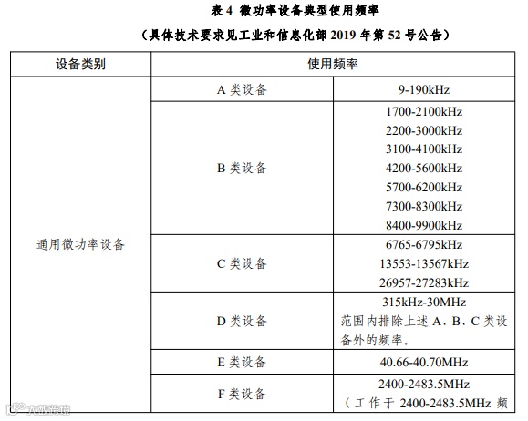 微功率设备典型使用频率见下表: