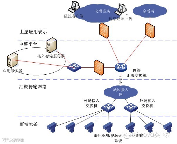 系统总体结构包括几部分:前端路口、系统平台和业务处理系统。
