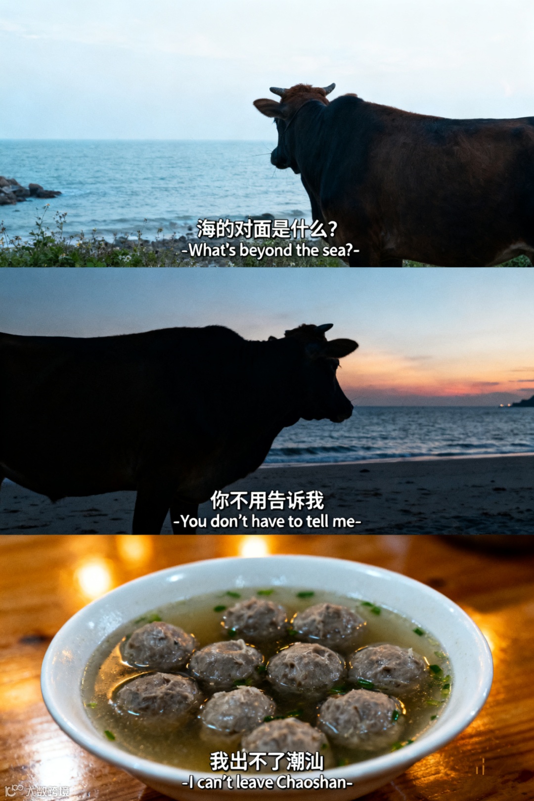 它最初源于用AI制作的海边三宫格模板——碧海蓝天、金色沙滩、人物背影,配上一行统一的文案:“海那边是什么?你不用告诉我,我会自己去看。”