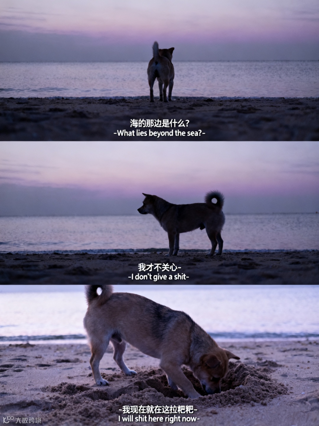 萌宠博主别出心裁,让狗狗望向海边,配上“我才不关心,我现在要在这里拉粑粑”的幽默解读;