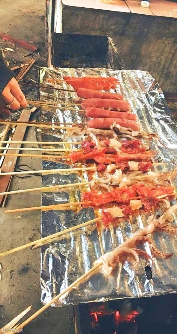 早早准备齐全的锅碗瓢盆和各类食材,自己动手,一展“厨艺”,美味的烧烤,我们的晚餐开始啦!