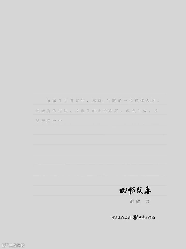 本书稿是一部散文集,是作者对父亲生平事迹的回忆,真挚的情感令人动容。