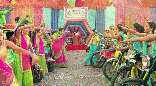 在印度的12天,经历了戏里戏外的跌宕起伏,那支魔性的音乐大概听了999遍,许多制作的细节都偏执地做到了极致:大妈斗舞的那场戏,取景的整个街道几乎全部被粉刷一遍,所有的突突车和摩托车都被里外装饰个遍,才有了那场色彩盛宴。
