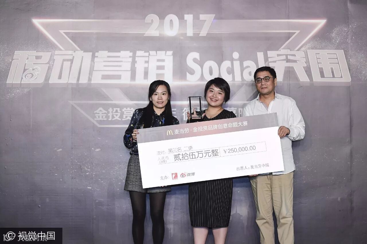 二更凭借其对 3000 多位人物影像纪录的经验,和颇具号召力的微博平台粉丝效应与实战推广经验,获得了由麦当劳(中国)副总裁兼首席市场官须聪、麦当劳(中国)全国市场部副总裁汤俊章、复旦大学管理学院市场营销系主任蒋青云、《中国广告》杂志社社长张惠辛、营销数据技术公司AdMaster精硕科技首席技术官洪倍所组成的豪华评审团的信任与认可,和微博众多用户的支持与喜爱,顺利挺进前三甲。
