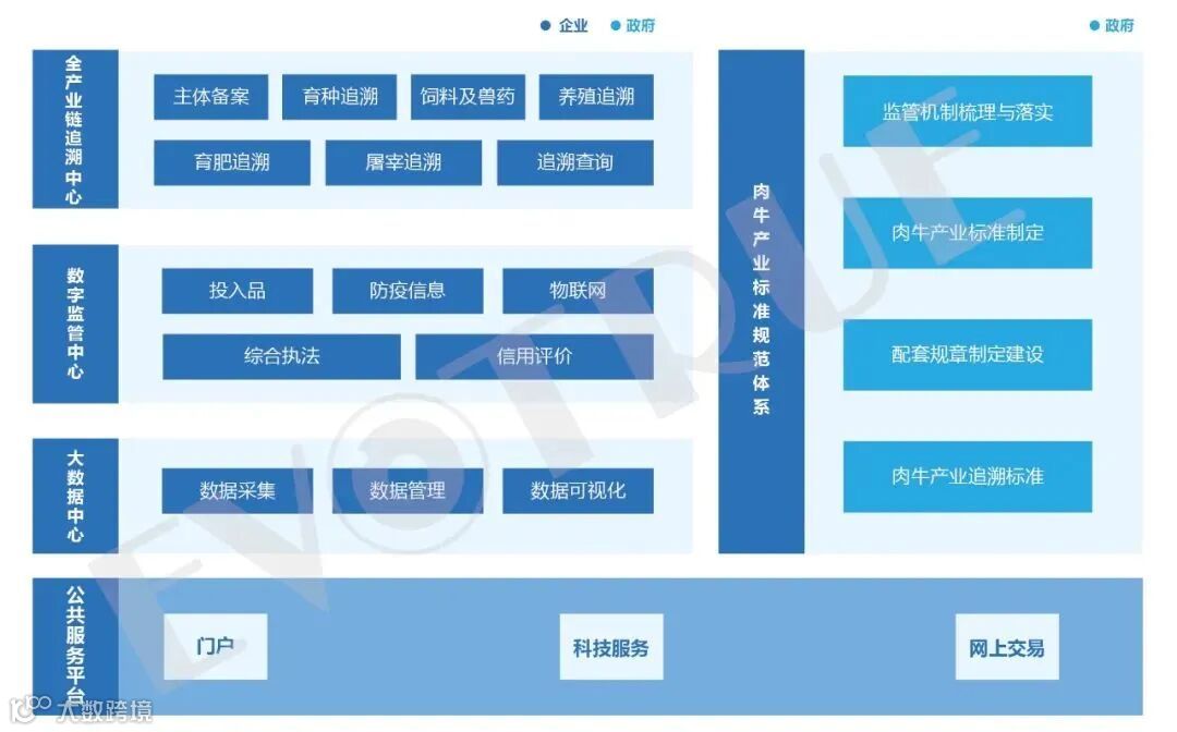 经天演维真驻场调研,以及与科左中旗国家现代农业产业园服务中心反复洽谈后,最终确定以“1+3+1”创新模式建设科左中旗肉牛产业溯源体系,实现肉牛全产业链数字化提升。(☞ 点击查看详细内容:实操案例 | 如何高质量建设国家现代农业产业园?天演维真案例解析!)