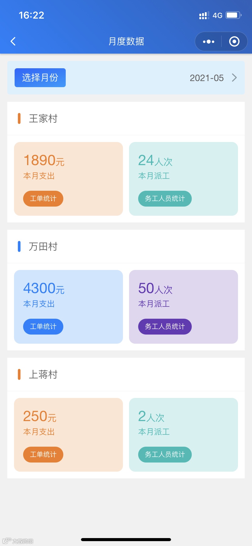 务工管理智慧应用在3月底开始设计研发,5月初上线小程序1.0版本,并在万田村、王家村和上蒋村先行先试,截至6月23日,3个村共注册务工人员301人、派工268人次,务工总金额达22835元。