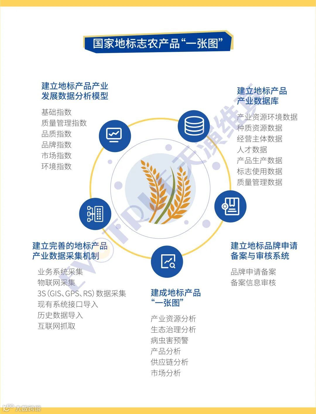 天演维真为贯彻落实国家质量兴农、品牌强农、数字农业的产业发展指导思想,以“绿色发展、品牌引领、数字赋能、农商互联”为指导纲要,以地理标志产品为核心,建立地理标志保护工程产品与服务体系,构建国家地理标志农产品“一张图”,打造地理标志农产品引领乡村特色产业发展样板。