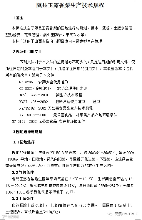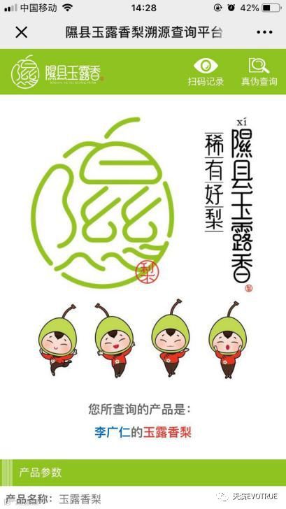 流通千万里 , 追溯零距离。近年来,隰县人民政府主抓玉露香梨追溯体系建设,并于2015年委托浙江天演维真建设完成。天演维真协助隰县人民政府构建了“来源可查、去向可追、责任可究”的溯源体系,实现产品溯源、质量监管、公众查询、精准扶贫等功能,全县玉露香梨统一品质、统一标准、统一防控。