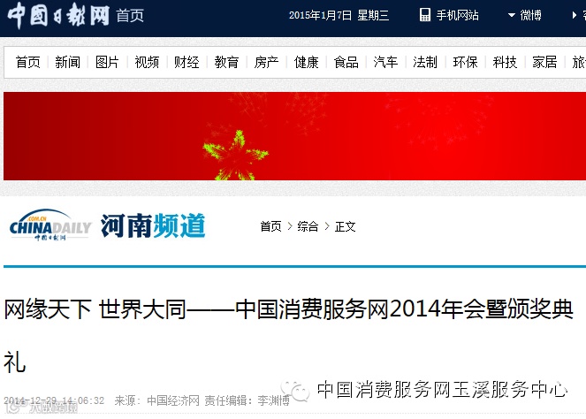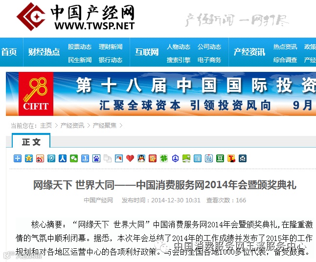 中国消费服务网2014年会盛典媒体宣传网址:
