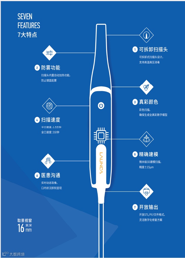 从行业痛点出发,经过2年深耕,2015年朗呈医疗推出了基于其在三维扫描技术自主研发的首款数字化口内扫描仪DL-100,先后获得26项知识产权,打破了国际技术垄断。