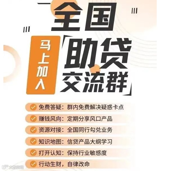 助贷领域仍然较为复杂,不同的贷款产品、政策等仍存在一定的差异,而且新的信息和变化也不断出现,所以有助贷同行有必要加入一个全国性的贷款中介交流群,这样才能快本地同行一步,快一步就能赚更多的钱!!