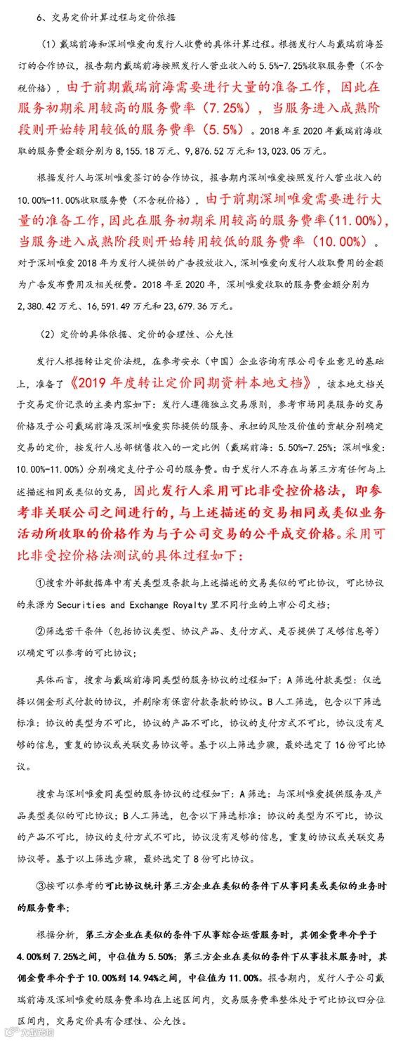 从事广告投放的深圳唯爱按发行人收入的10.00%-11.00%收取佣金4.26亿元。