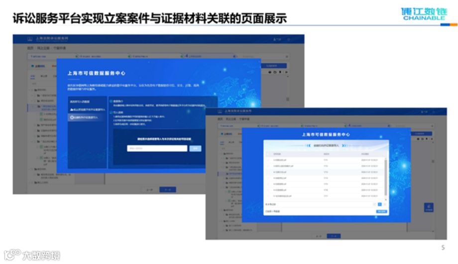 纠纷发生后,进行侵权取证并上传至证据保险箱,并通过与全国法院司法链跨链协同,实现纠纷案件相关证据“一键导入、一键核验”,提高民事纠纷案件事实查明效率,有效保障企业司法诉讼合法权益,降低企业维权成本。为金融机构诉前证据固定保全提供技术支撑,有效提升跨部门信息流通效率、加快法院诉讼审判进程、强化执法与司法协同效能,助力金融纠纷化解能力系统性提升。